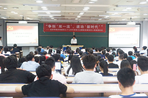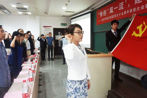 2018年6月6日下午,学院党委 “争创‘双一流’,建功‘新时代’”庆祝建党九十七周年表彰大会暨新发展党员入党宣誓仪式在明德法学楼0201教室成功举办。