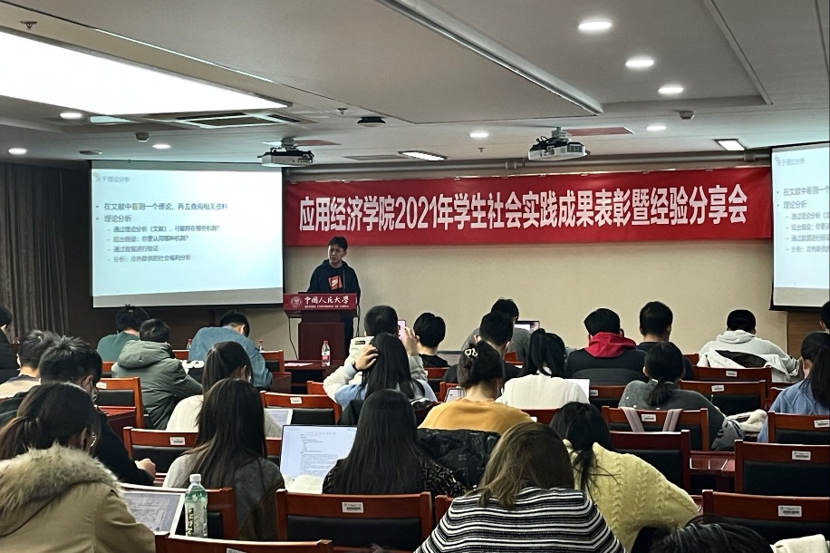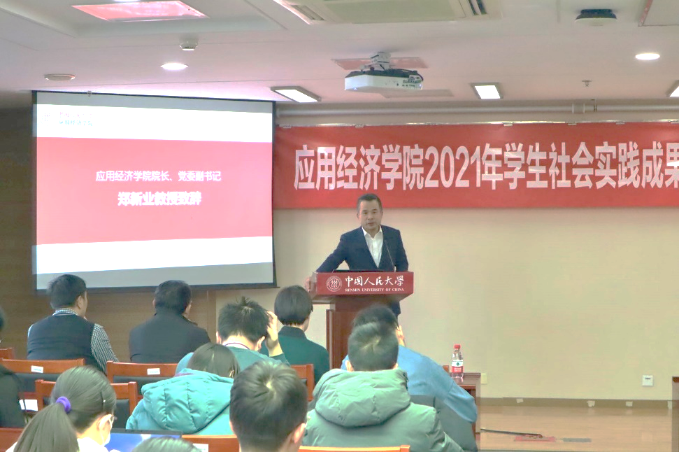 12月15日,学院举办“百年奋斗铸精神,扎根中国育三有”2021年学生社会实践成果表彰暨经验分享会,对本年度取得优秀实践成果的应经学子进行表彰,并邀请优秀学生代表分享参与社会实践、开展学术研究的经验。学院党委副书记裴建锁主持会议。