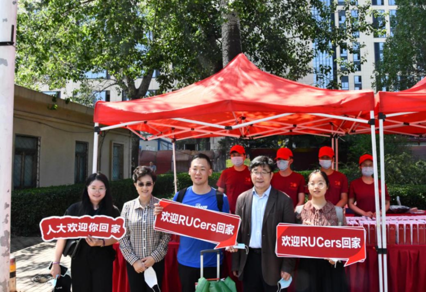 6月10日,中国人民大学2020届毕业年级学生志愿者有序返校,中国人民大学党委书记靳诺、校长刘伟、党委副书记郑水泉、副校长朱信凯,市委教育工委联络员邓鸿,校长助理、学校办公室主任顾涛,以及相关部处、各学院负责人齐聚学校东门,迎接同学们返校。