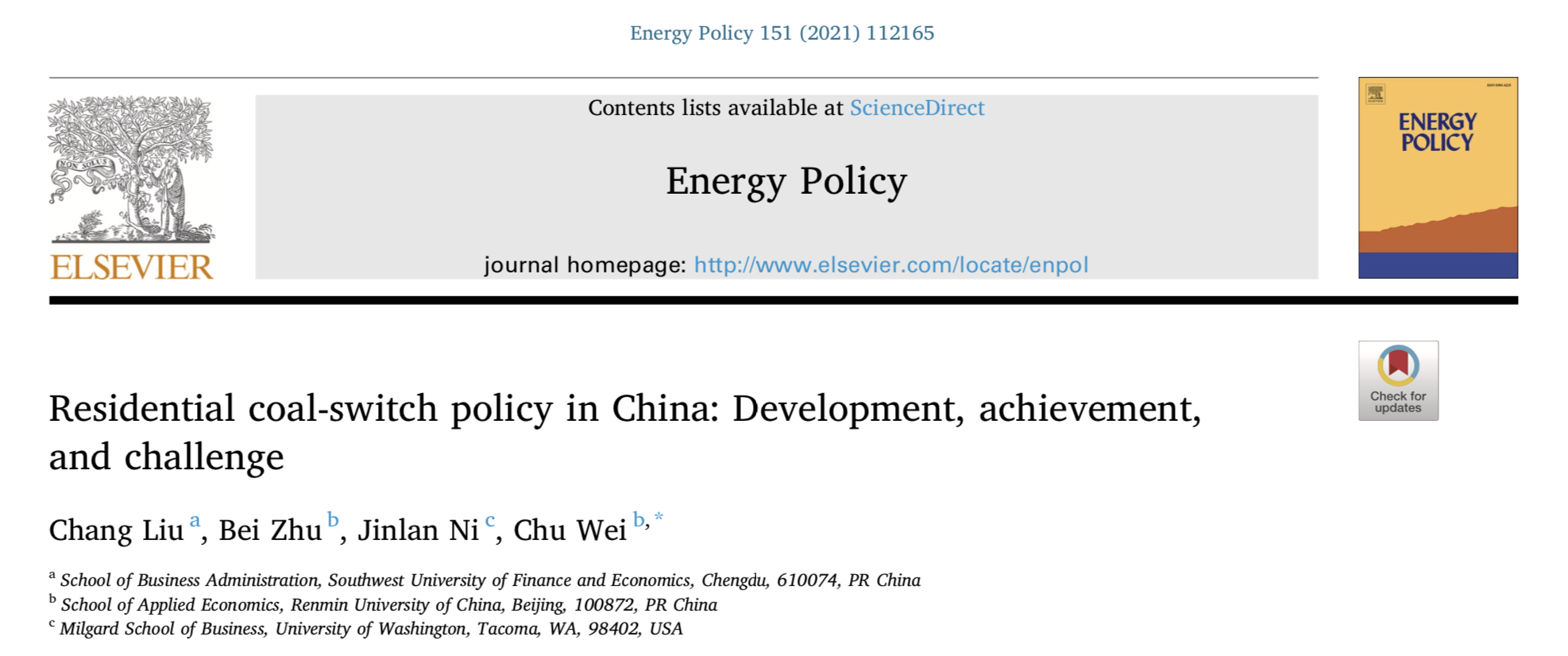 Residential coal-switch policy in China: Development, achievement, and challengeChang Liu, Bei Zhu, Jinlan Ni, Chu Wei