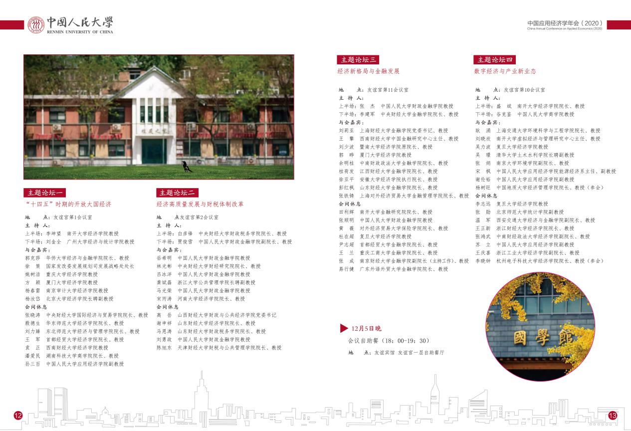 本次年会的主题是“‘十四五’时期的中国经济”,本次年会将邀请全国高校应用经济学科学术带头人与青年学者代表,搭建一个顶尖学者交流研究、资源共享、协同创新和共商发展的学术交流平台,围绕“十四五”时期国民经济和社会发展的重大需求,总结提升中国的发展经验,为世界贡献新的理论范式和解决方案。