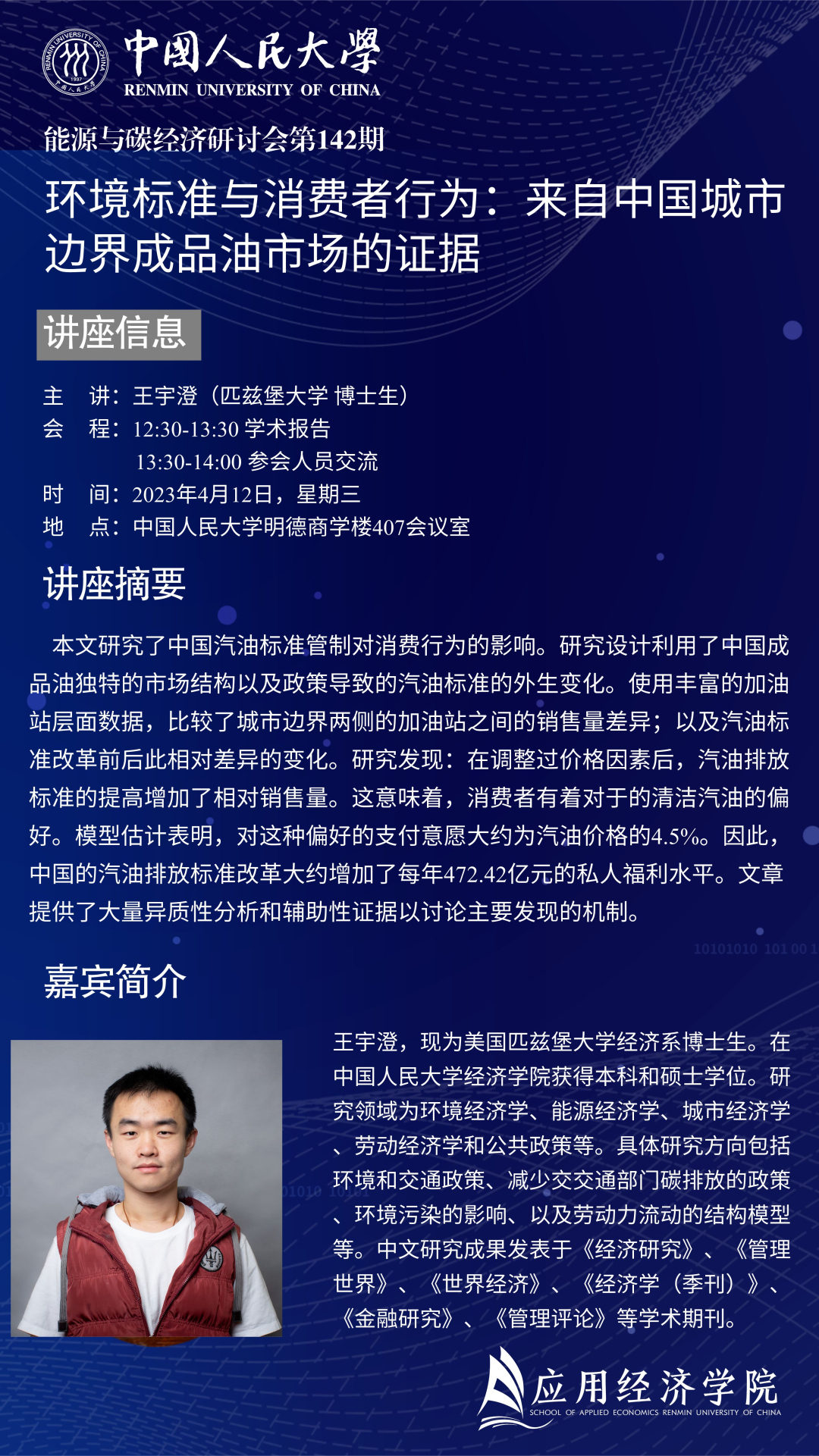 能源与碳经济研讨会(Energy and Carbon Economics Seminar)由英雄联盟下注-英雄联盟博彩 能源经济系定期推出,旨在为研究中国能源经济和碳经济问题的学者提供交流的平台。