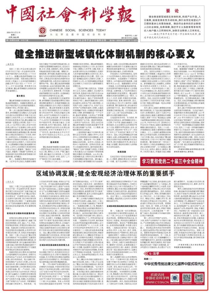 宏观经济治理体系是基于中国宏观经济实践的丰富完整体系,涵盖了国民经济的财政、货币、就业、产业、科技、环保等诸多领域。宏观经济治理体系的构建,是通过树立宏观经济治理目标,形成宏观经济治理政策,运用多样化的宏观经济治理工具,实现经济高质量发展。党的二十届三中全会在“健全宏观经济治理体系”中突出强调了完善国家战略规划体系和政策统筹协调机制、深化财税体制改革、深化金融体制改革和完善实施区域协调发展战略机制四个方面,显示出区域协调发展对于完善国家宏观经济治理体系的重要性。