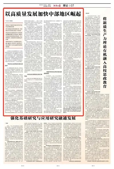 中部地区高质量发展的新特征