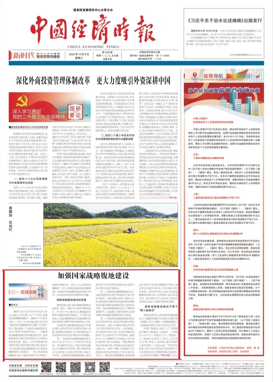加强国家战略腹地建设,就是要通过优化重大生产力布局打造与经济核心区域相呼应的经济发展新空间,通过优化新质生产力布局打造国家发展的新增长极并优化战略性新兴产业与未来产业的空间分布,通过产业转移构建优势互补、高质量发展的区域经济布局和国土空间体系。