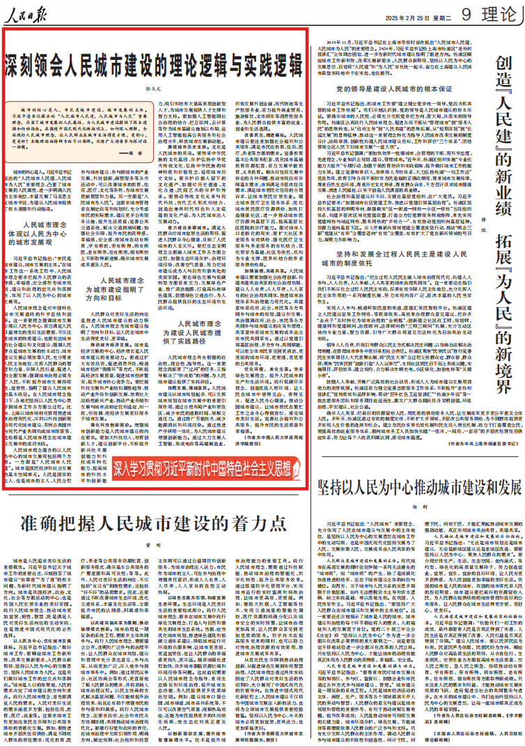 城市的核心是人,市民是城市建设、城市发展的主体。习近平总书记提出的“人民城市人民建,人民城市为人民”重要理念,凸显了城市发展的人民属性,为人民城市建设提供了根本遵循和行动指南。在推进中国式现代化新征程上,如何深入理解、全面践行人民城市理念,让人民群众在城市生活得更方便、更舒心、更美好?本期理论版特辟专版予以阐释。欢迎广大读者参与探讨这一话题。