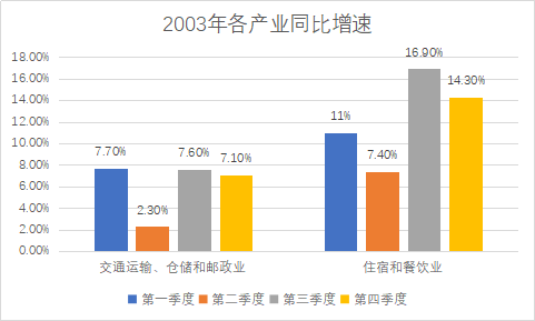 图1 2003年交通运输、仓储和邮政业,住宿和餐饮业季度产业增加值。