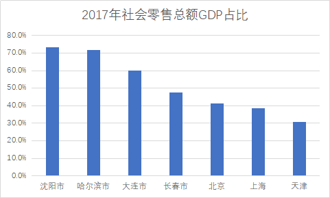 图2 2017年主要城市社会零售总额GDP占比