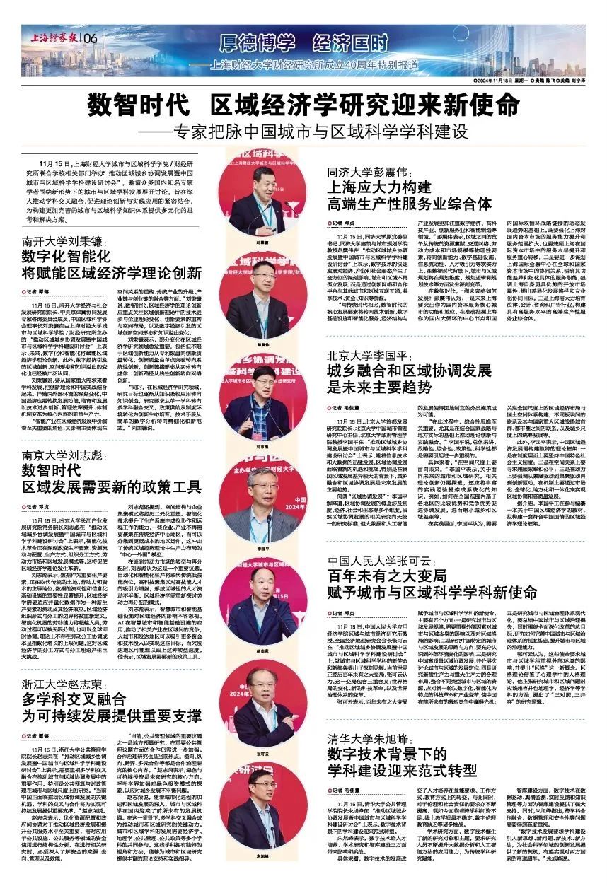 11月15日,上海财经大学城市与区域科学学院/财经研究所联合学校相关部门举办“推动区域城乡协调发展暨中国城市与区域科学学科建设研讨会”,邀请众多国内知名专家学者围绕新形势下的城市与区域学科发展展开讨论,旨在深入推动学科交叉融合,促进理论创新与实践应用的紧密结合,为构建更加完善的城市与区域科学知识体系提供多元化的思考和解决方案。英雄联盟下注-英雄联盟博彩 教授、全国经济地理研究会会长张可云参会并发表观点,观点被《上海证券报》报道。