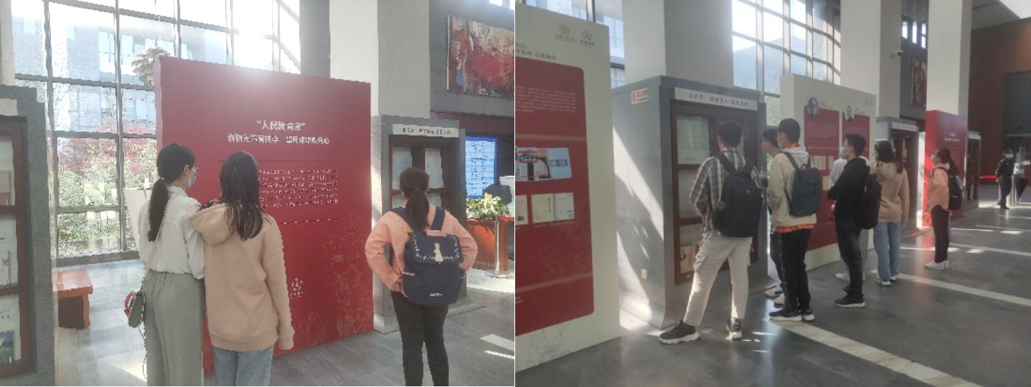 我们共同参观了中国人民大学人文大师精神宣传教育展。我校校徽主体是三个篆书的“人”字,其意为人民、人本、人文。“人文精神”既体现着历史传承,又在启迪着我们未来。我们学校经历过烽火的洗礼,也为国家建设贡献着力量,始终与党、国家和人民同呼吸共命运,体现着人大人的责任和担当。此次展览的各位大师,正是人大人的杰出代表,他们以实际行动诠释了“立学为民、治学报国”。作为新时代的人大学子,在校要认真学习科学文化知识,在工作岗位上要踏踏实实做出贡献,心系家国、使命在肩、不负青春,当以行动传承红色基因。