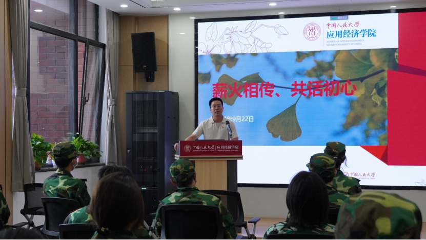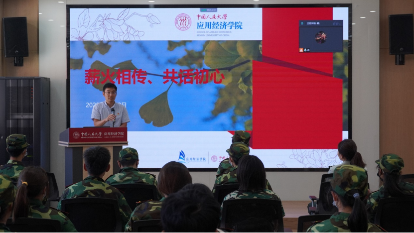 军训过程中,学院举办“薪火相传,共话初心”党员分享会暨入党流程介绍会,学院党委副书记裴建锁、军训团副政委刘硕扬、2020级博士生姬晨阳,分享自己与军队、与党的故事,鼓励同学们努力磨练品质,坚守初心。新生代表池子琰、杨睿分享了自己的成长经历,表达自己对共产党的深厚感情,展现人大学子的红色基因。学院党务秘书刘畅详细讲解了入党流程,鼓励大家积极向党组织靠拢。