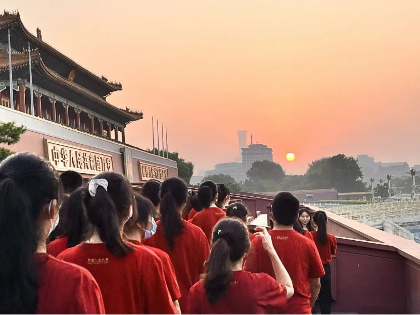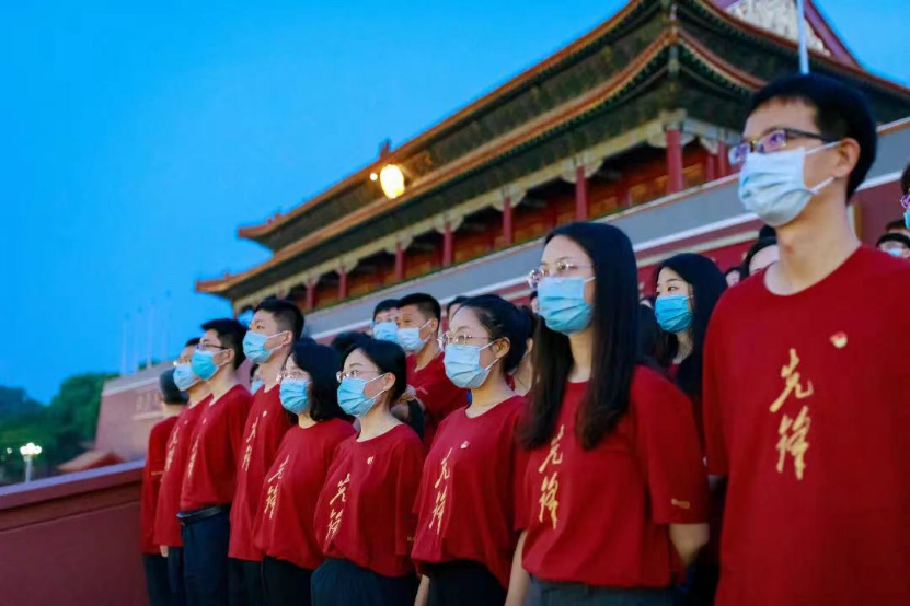 天安门观礼台上,他们在缓缓升起的国旗下内心澎湃,精神振奋,深刻体会到青春使命与责任担当。