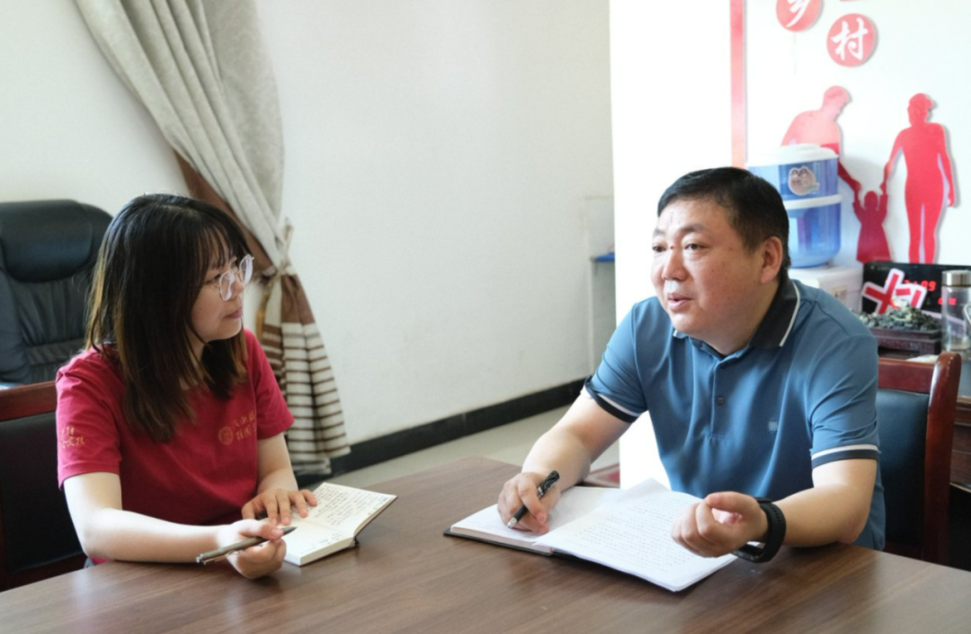 ▲博士生王莹莹访谈港口镇党委书记查小龙
