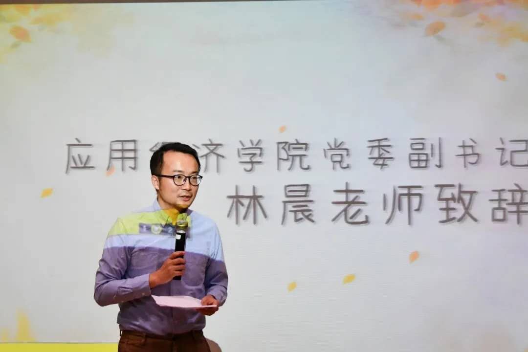 林晨老师代表学院致辞,他指出迎新晚会是“关键前八周”新生入学教育的重要一环,同时也是应经学子文化传承的一种表现。希望同学们通过参与迎新晚会等系列文体活动,培养团队意识,融入应经大家庭。也希望同学们在精彩的大学生活中发现不一样的美丽,展现自己的才华,让青春在大学校园里尽情绽放,全面发展,成长为社会所需的人才。最后,林老师祝愿大家度过一个精彩的夜晚,充分享受此次晚会。