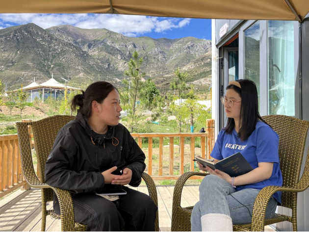 ▲西藏大学经济与管理学院硕士生任文丽访谈城关区乡村振兴局局长次仁卓嘎