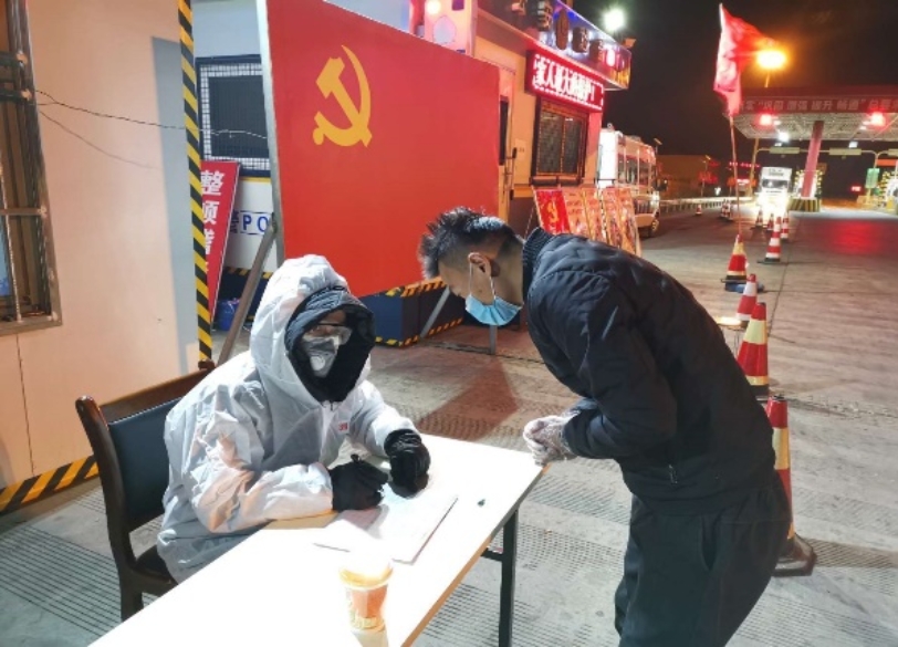 党员干部深夜在高速路口值守