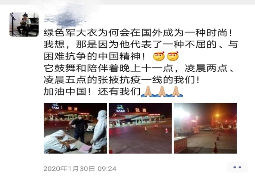 从大年初二开始,我家乡的党员们就开始了值守的工作。高速路口、各个社区乃至各小区门口,都能看到党员的身影。他们不仅白天要登记,晚上也要值班。张掖的冬天气温是很低的,党员们值班只能坐在临时搭建的小帐篷里。白天还好,晚上在没有暖气的帐篷里,他们只能裹着厚重的衣服,抱着冒着热气的玻璃杯走来走去来驱散寒冷。