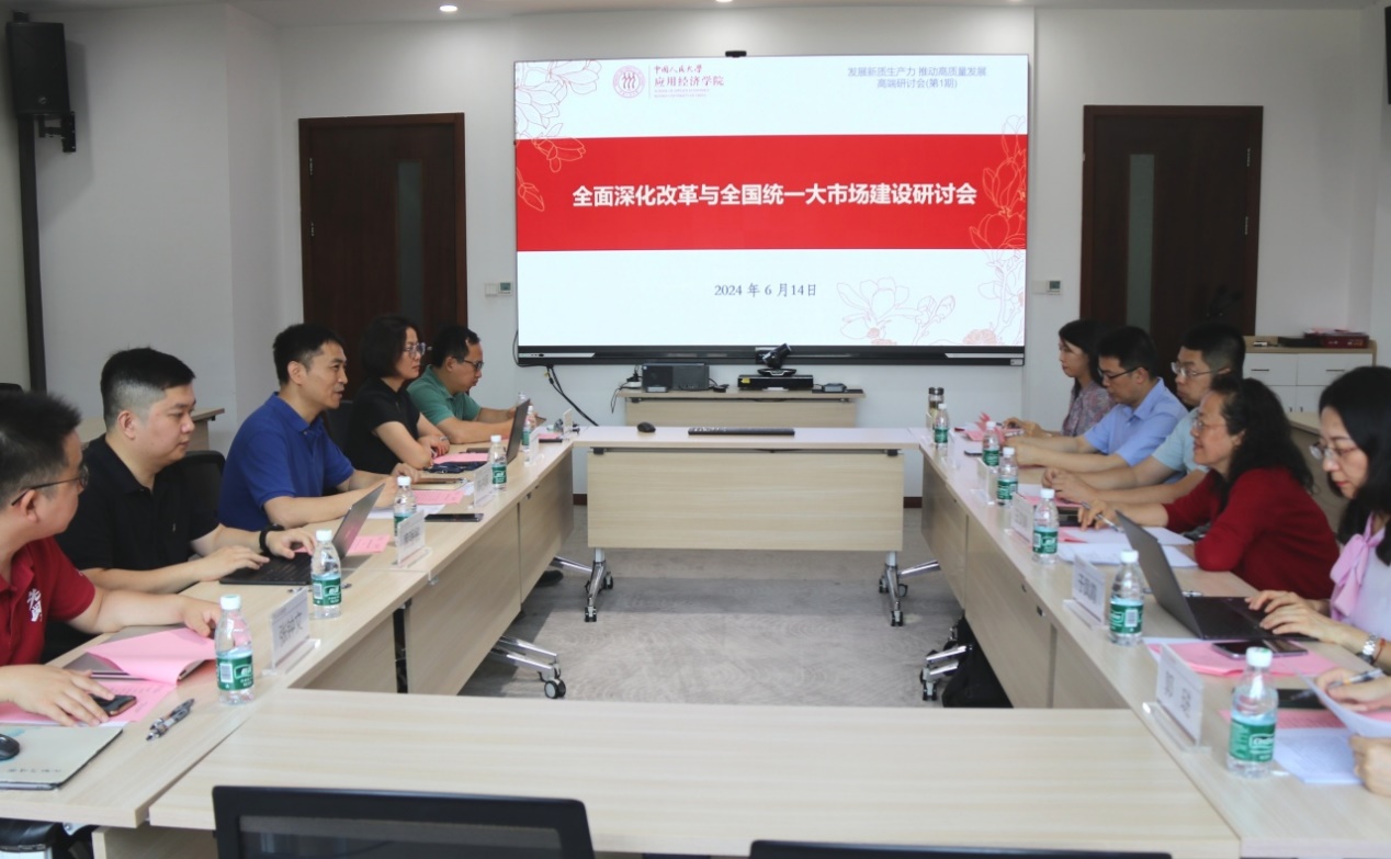 6月14日,英雄联盟下注 举办“全面深化改革与全国统一大市场建设”研讨会。中央财经大学政府管理学院教授王文娟、中国人民大学商学院教授谢莉娟、对外经济贸易大学国际经济贸易学院教授行伟波、国家信息中心信息化和产业发展部处长于凤霞,以及英雄联盟下注-英雄联盟博彩 “全国统一大市场”团队成员孙三百、秦萍、席强敏,“民营经济”团队成员张钟文等参会。会议由学院副院长陈占明主持。