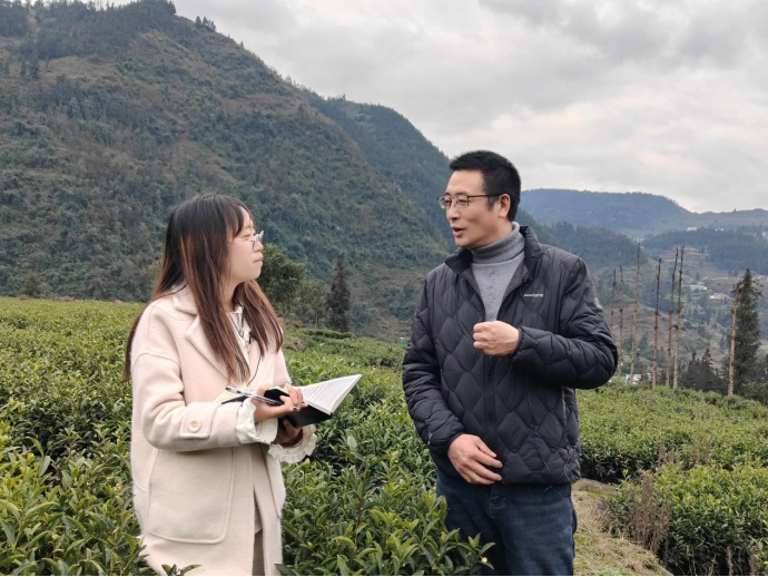 罗坎镇副镇长李上涌(原大庙村第一书记)与昭通学院管理学院本科生周恩娜开展访谈。李上涌提到,在脱贫攻坚的进程中,罗坎镇经济实现了成功转型,从过去主要依赖谷类种植的单一收入模式,逐步发展形成了以白茶产业为主导的多元化经济格局。镇雄县罗坎镇大庙村充分利用当地山高坡陡、沟壑纵横的地形条件,以及亚热带季风气候无霜期长的特点,大力发展白茶产业。村集体整合土地资源,规划出集中连片的种植区,实现了白茶产业规模化发展。同时,企业为农户提供种植和采摘技术指导,确保白茶品质上乘。白茶产业发展主要通过以下两个渠道促进村民增收:首先,农户通过土地流转获得租金收入。同时,全镇约2000名农户参与白茶采摘,可以获得务工收入。此外,在基础设施建设方面,大庙村进村道路与村内道路拓宽硬化,灌溉系统完善,山塘、水库等水利工程得到维修加固。这些改变让大庙村发生了翻天覆地的变化,为乡村振兴奠定了坚实基础。除此之外,白茶产业的发展使村民对村集体的认同感和信任度显著增强,进一步促进了村集体的组织建设与管理。