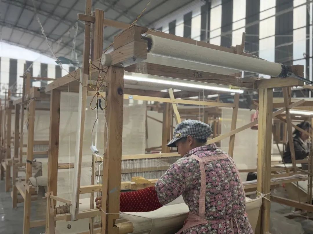 1月18日上午,乌蒙山赤水队到达镇雄县五德镇山水涧致富织布车间,调研帮扶车间的就业情况。2022年初,山水涧织布车间负责人刘群将纺织产业从浙江引入五德镇进行初加工。在五德镇党委、政府的扶持下,整合渡船坝社区小河沟闲置土地资源1400余平方米,以“三年免租、二年减租”的方式租给山水涧织布车间,帮助山水涧织布车间解决厂房不足问题。该车间创新实施了一种新型务工模式,通过在车间集中开展纺织技术培训后,工人既可以选择在车间集中上班,也可以选择纺织机入户在家中上班,实现上班地点自由。若选择居家工作,车间直接把织布机安装在工人家里,并定期上门送材料,加工完成后由工厂统一回收。此外,为了激励工人积极性,工厂实行“保底加奖补”的薪酬制度,对织布超过3卷的工人,所生产的全部布匹按0.5元/米的标准给予奖补。目前,该工厂规模不断壮大,已为600-1000人提供了就业机会。工人平均工资约为3000元,最高可达5000-6000元。工厂有效利用了妇女闲置的劳动力,不仅增加了家庭收入,也提升了女性在家庭和社会中的地位,对当地社会环境和治理能力的改善产生了积极效应。