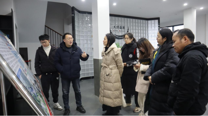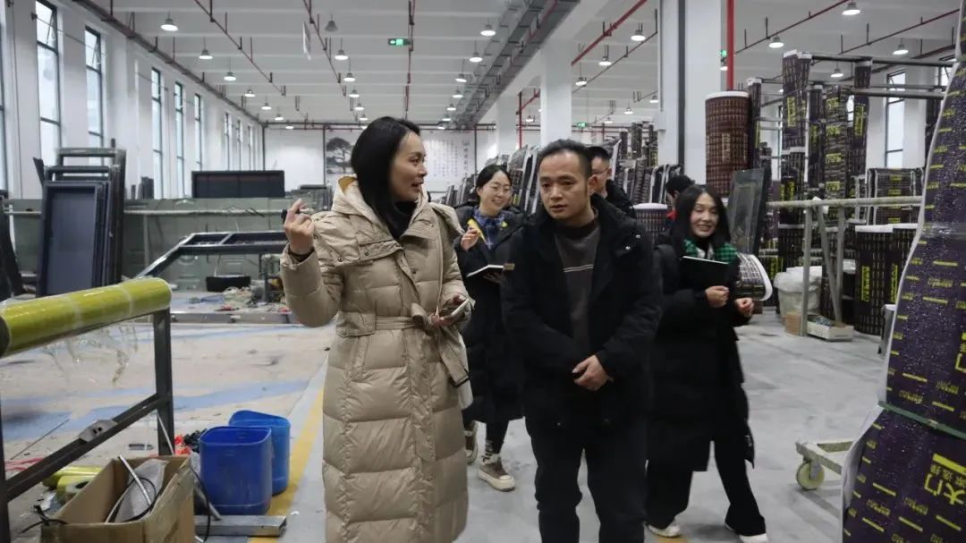 ▲乌蒙山赤水队调研博将府门业生产车间