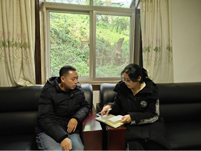 ▲昭通学院马克思主义学院成冬梅老师对镇雄县农业农村局副局长龚海访谈后赠书留念