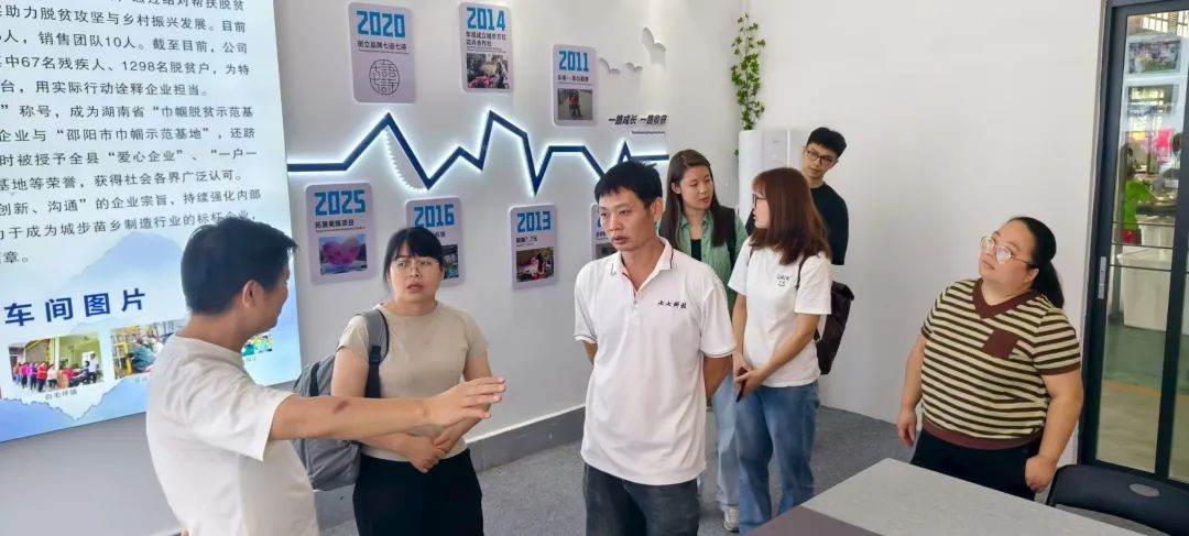 7月14日下午,调研团抵达湖南七七科技股份有限公司,实地调研企业助残扶贫的成果与现状。湖南七七科技股份有限公司位于城步苗族自治县儒林镇土溪村,公司实际生产基地位于城步县工业集中区内,是当地重点规划的产业园区。公司成立于2016年12月,是一家集仿真花、箱包、皮具等产品研发、生产、销售于一体的综合型出口企业。产品远销东南亚、中东、欧美、南非等全球多个国家。公司采用“公司+合作社+农户”的经营模式,通过结对帮扶脱贫户,累计发放分红160万元。切实助力脱贫攻坚与乡村振兴发展。目前拥有员工136人,其中研发团队5人,销售团队10人。截至目前,公司已累计带动1460人就业增收,包括67名残疾人、1298名脱贫户。