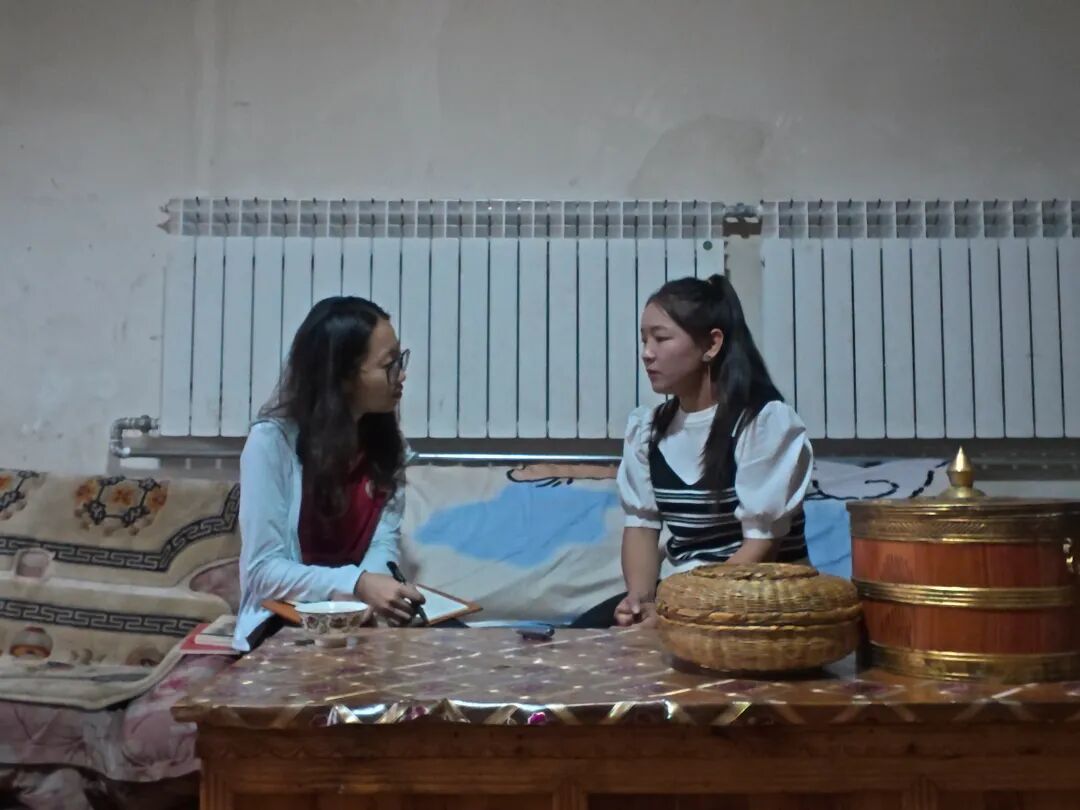 ▲中国人民大学外国语学院副教授张猛访谈贡觉县原扶贫办主任蔡小发。