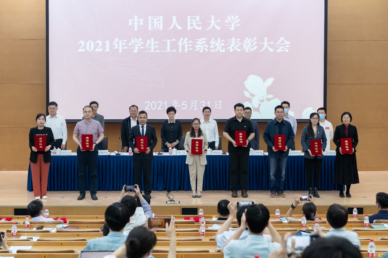 5月31日,中国人民大学2021年学生工作系统表彰大会在逸夫第一报告厅举行。我院荣获2020年中国人民大学学工系统疫情防控特别贡献奖、基层学生思想政治工作优秀项目奖等;同时,我院多位同学荣获2020年抗疫先进个人荣誉称号等。我院院长、党委副书记郑新业教授作为获奖代表出席会议,并就“关键前八周”新生入学教育项目做专题分享。