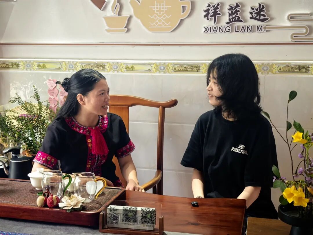 苗家四妹向调研团介绍苗绿香茶业的发展历程。五指山水满乡新村是五指山大叶红茶的主要产地之一,也是苗族同胞的家园。这里依山傍水,云雾缥缈,每家每户都种植着茶树,有着深厚的茶文化底蕴。在2015年,三姐成立五指山苗绿香茶业专业合作社,一心投身于当地茶产业的发展。规模小,她们就承租村里的茶园,收购农户的茶青,缺经验,她们就去云南、福建茶厂学习,了解整个产业的工艺技术和管理方法。经过她们的不懈努力,合作社的规模越做越大,最终成立的自己的品牌“苗绿香”。如今,苗绿香茶业专业合作社已经成为一家集种植、加工、销售、培训为一体的茶企业,逐步走向规模化和品牌化发展。