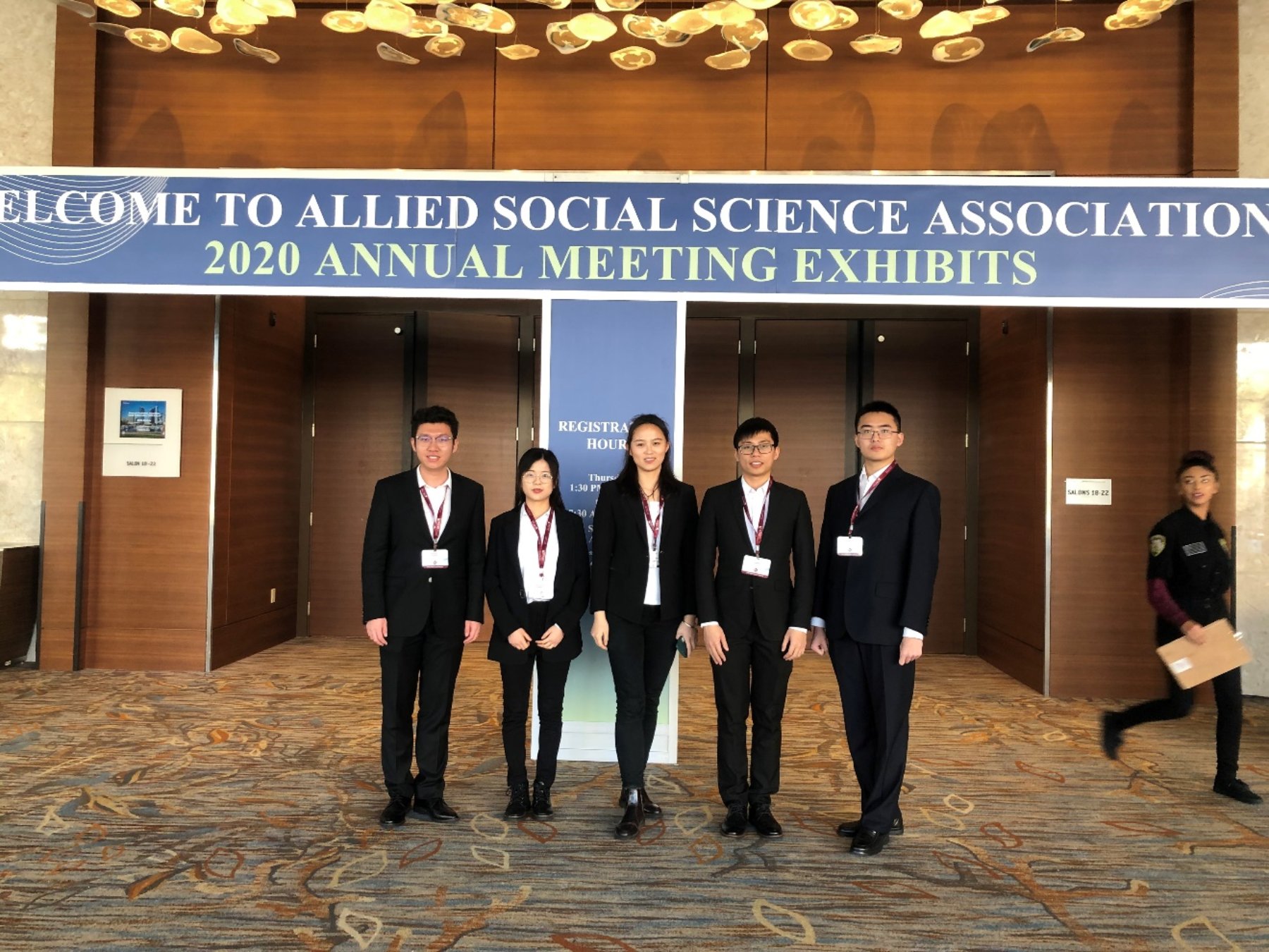 张阳阳(左二)参加2020年美国经济学年会