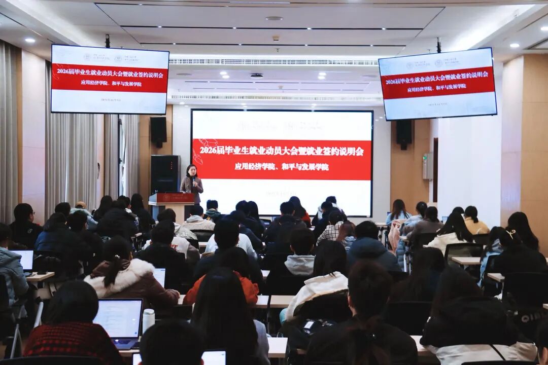 为深入学习贯彻党的二十届四中全会精神,落实学校就业工作整体部署,持续完善学院“招生—培养—就业”全链条工作体系,全力促进毕业生高质量充分就业,11月5日下午,学院召开2026届毕业生就业动员大会暨就业签约说明会,英雄联盟下注 、和平与发展学院2026届毕业生参加,英雄联盟下注 党团学办公室李心宇主持。