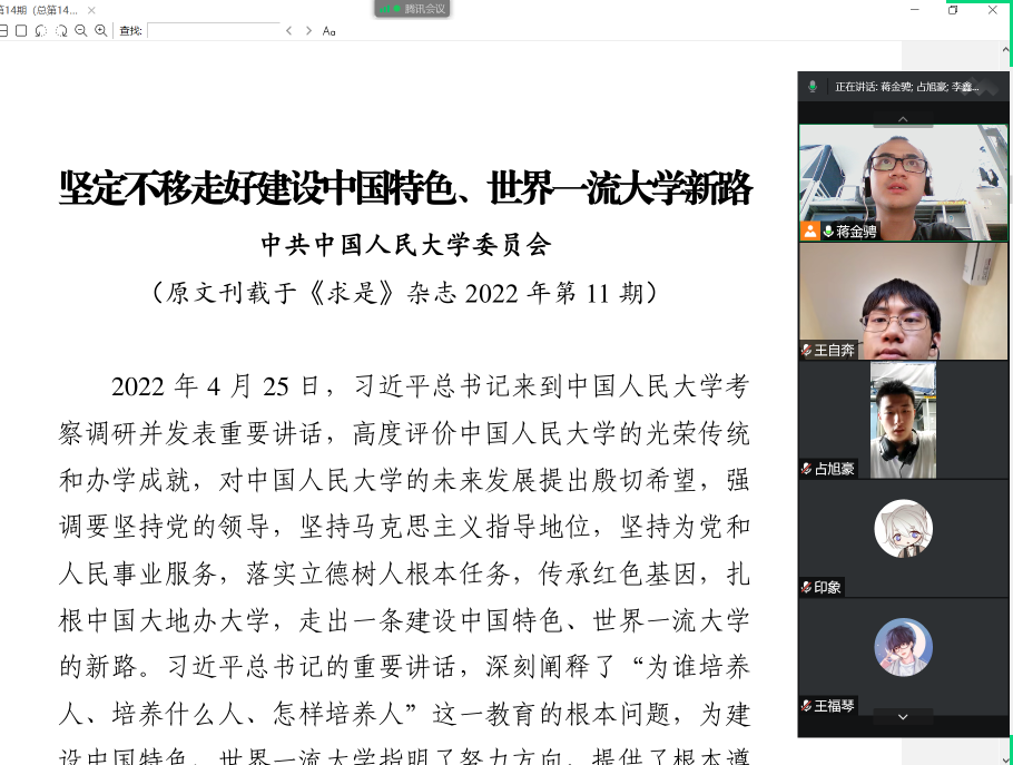 十月金秋,举世瞩目的中国共产党第二十次全国代表大会胜利召开;五四青年节前夕,习近平总书记到中国人民大学考察并发表重要讲话。英雄联盟下注 全体党支部和班团集体第一时间组织观看大会直播和新闻报道,通过党支部联学、团支部共学、主题党日、主题团日、个人研学等多种方式,认真学习领会党的二十大精神和习近平总书记在中国人民大学考察时重要讲话精神,迅速掀起学习热潮。我们牢记总书记嘱托,始终听党话、跟党走,踔厉奋发、勇毅前行。