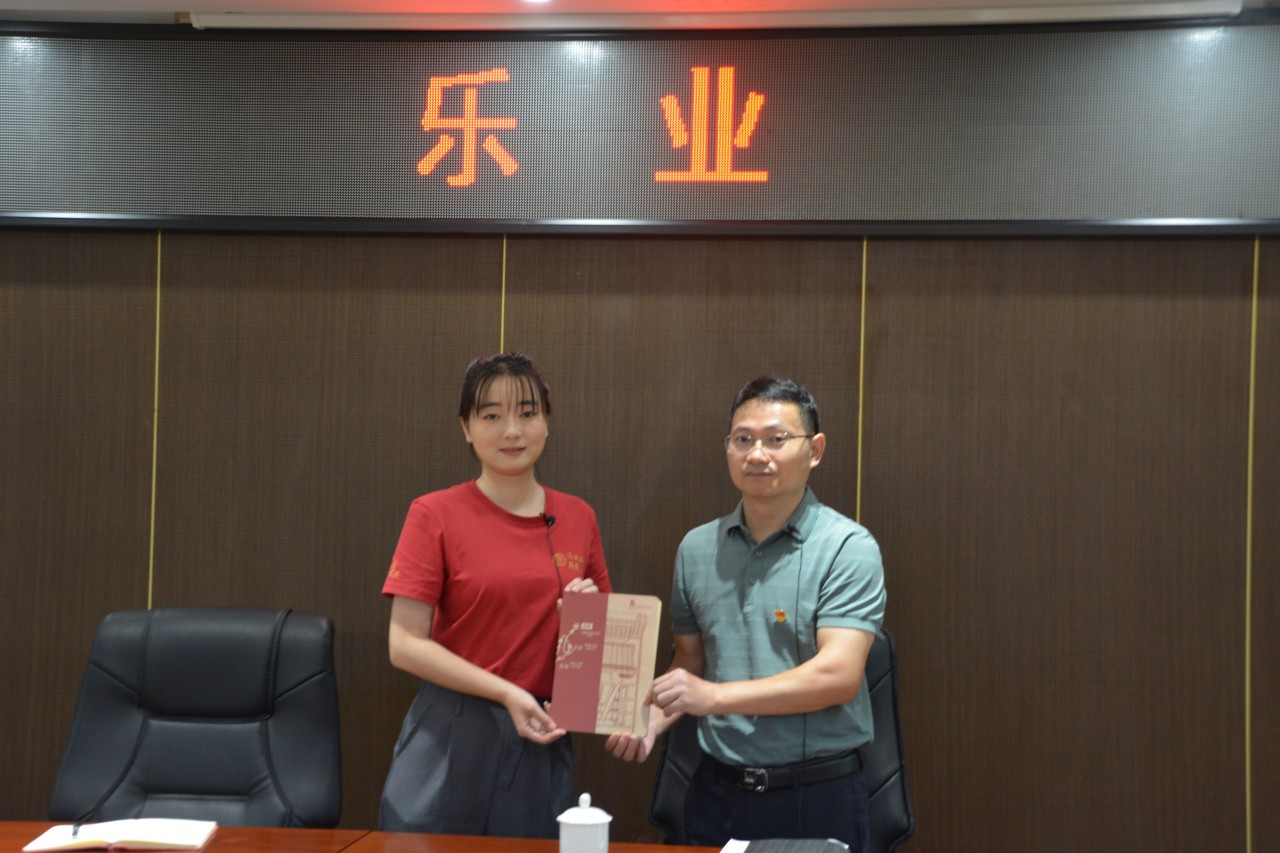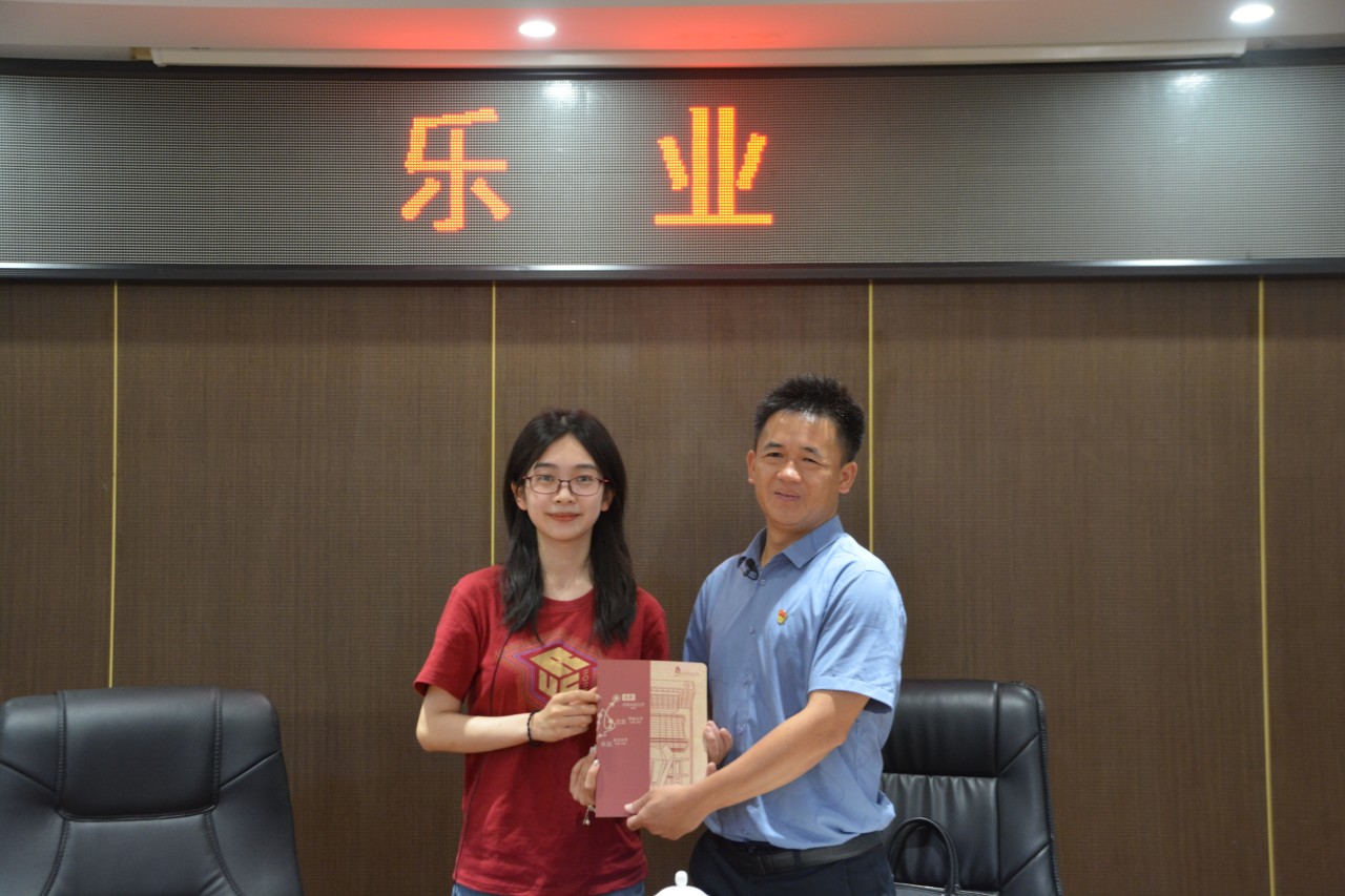 ▲孔儒婧向乐业县委常委、县委办主任郑玲岭赠送纪念品