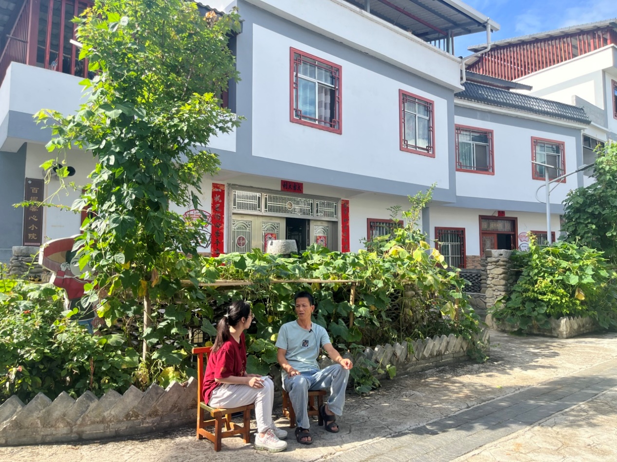 ▲陈凯茜同学访谈百坭村脱贫户黄态昇