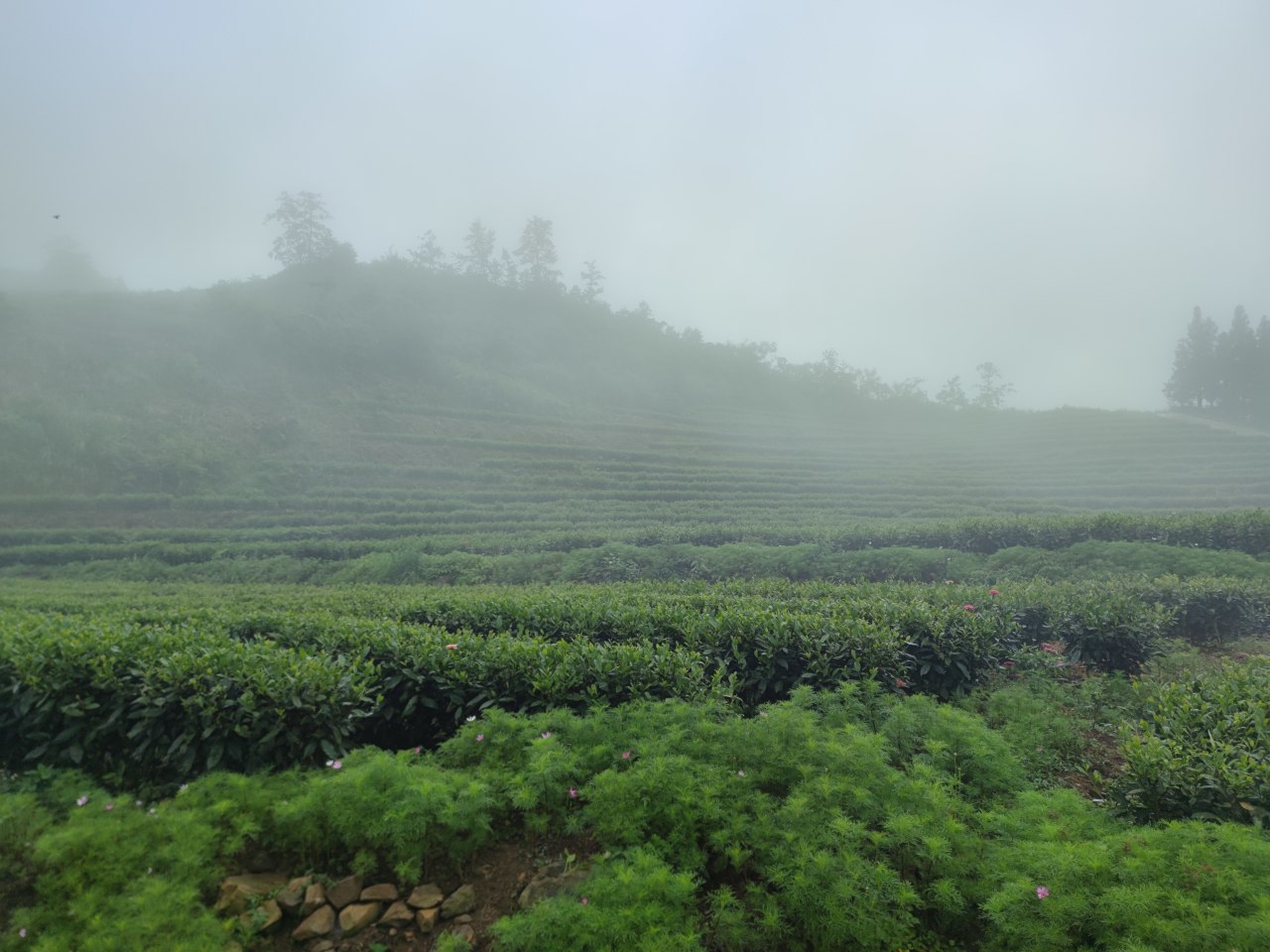 ▲云雾缭绕的高山茶园