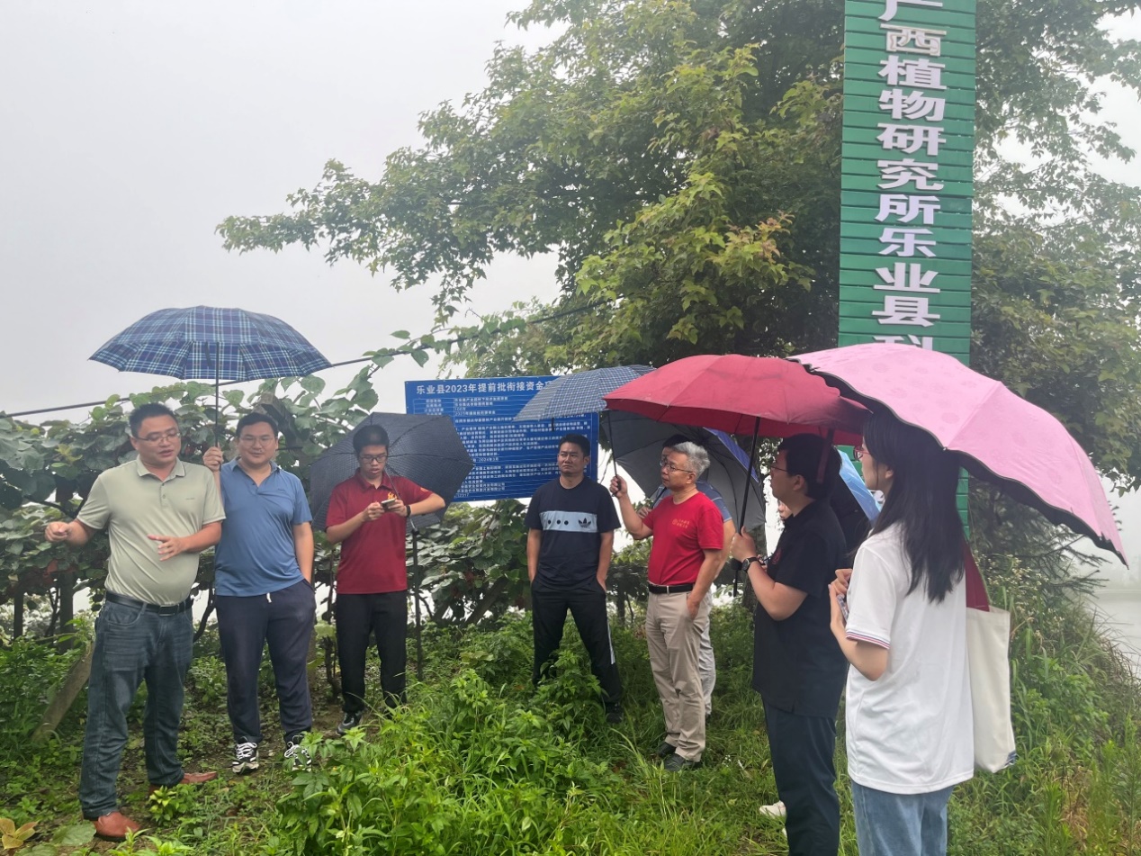 7月19日上午,调研团到达乐业县同乐镇达存村猕猴桃基地开展实地调研。