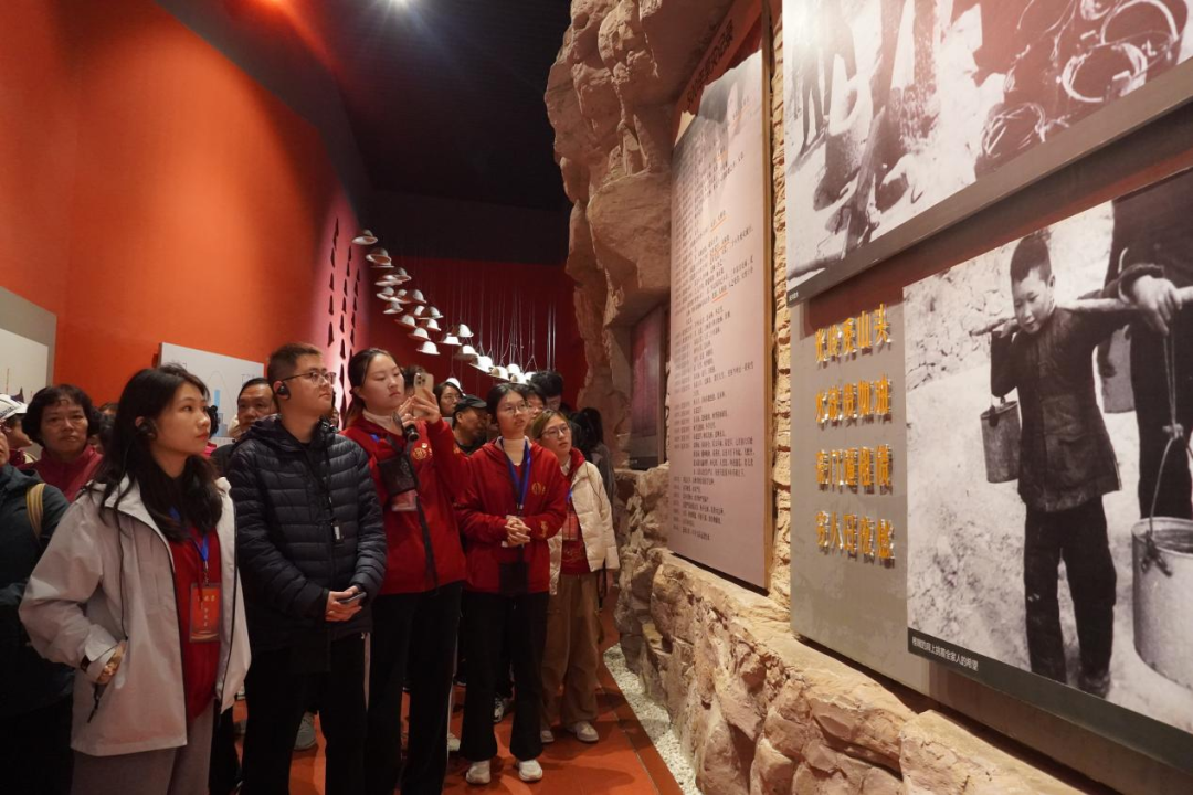 走红飘带、登水长城、观青年洞,学院师生沿着红旗渠徒步行走,亲身体验了当年修渠工人的艰辛与不易,身临其境感受当年修渠岁月。作为红旗渠总干渠的咽喉工程之一的青年洞,长616米,高5米,宽6.2米,峭壁之上,三百青年,日夜苦战,洞通渠成。脚下的每一步,都是对历史的致敬;眼前的每一处,都是对精神的礼赞。青年洞的故事,更加勉励师生不怕苦、不为难、不服输,在新时代有新担当、有新作为。