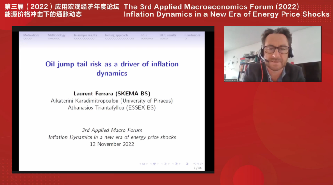 SKEMA商学院教授Laurent Ferrara作题目为“Commodity Jump Tail Risk as Predictor of Inflation”的报告。该研究构建了一个衡量主要农产品期货市场跳跃性尾部风险协动性的风险因素指数。结果表明,该指数对美国和整个七国集团的核心通胀和整体通胀都具有的预测能力,在控制菲利普斯曲线、油价和汇率等主要通胀决定因素后也是如此。最后,研究基于递归分析和动态平均模型,证明协动跳跃性尾部风险因素在预测通货膨胀领域变得越来越重要。