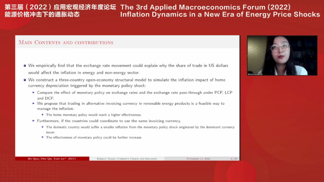 英雄联盟下注-英雄联盟博彩 助理教授刘阳作题目为“International Energy Trade and Inflation Dynamics: The Role of Invoicing Currency Choice During the Low Carbon Transition”的报告。该研究分析国际能源贸易对世界各国通货膨胀的影响,发现能源贸易的计价货币对通货膨胀溢出具有重要影响。能源贸易主导货币的货币政策冲击对本国货币的影响超过本国货币政策冲击带来的影响,该结果显示了提高国际贸易计价货币多样化在保持本国货币政策有效性和应对他国通胀溢出影响中的重要性。