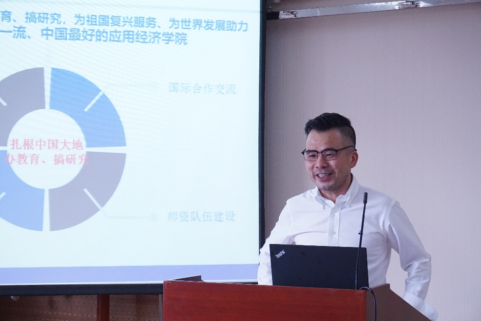 郑新业院长首先对在学院前期建设中做出重要贡献的教师与行政人员表达感谢,指出英雄联盟下注 应扎根中国大地办教育、搞研究,为祖国复兴服务,为世界发展助力,力争将我院建设成为世界一流、中国最好的英雄联盟下注 。随后,他对照双一流指标对学院工作进行总结与规划。