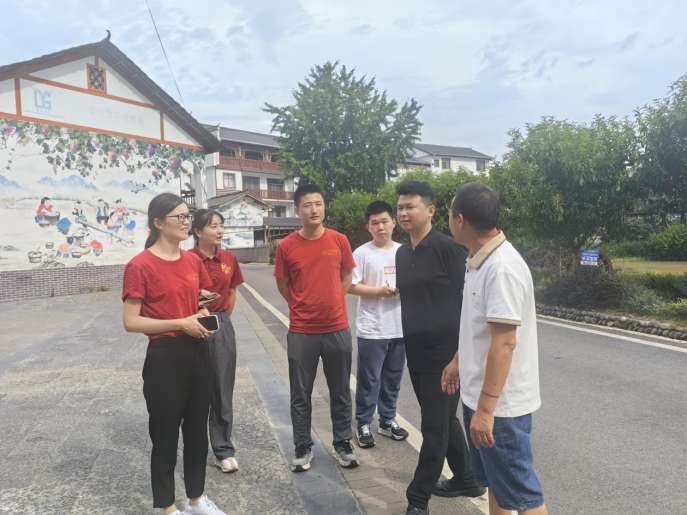 ▲调研队了解资源县中峰镇大庄田村抱财丘的发展情况