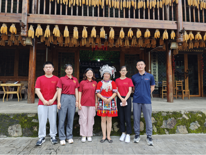 ▲调研队和苗族脱贫户合影