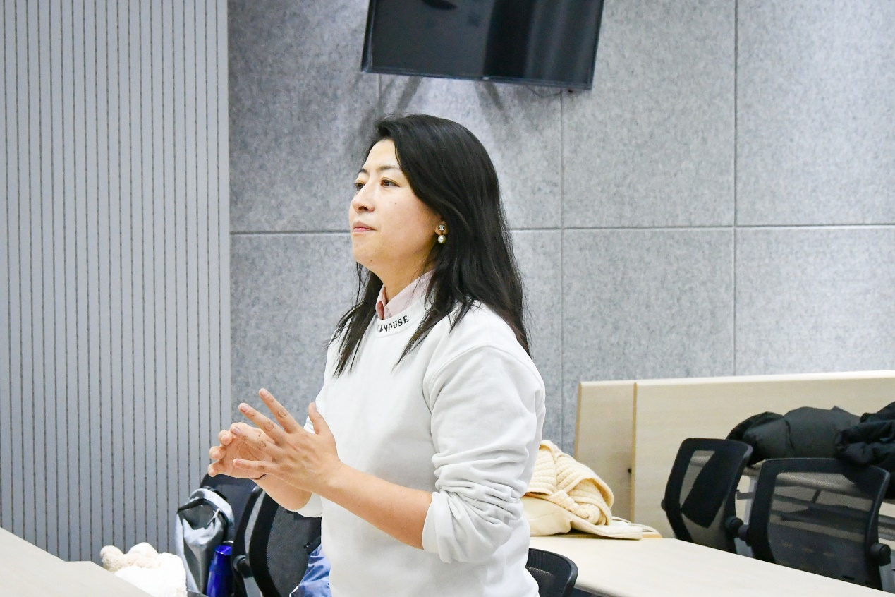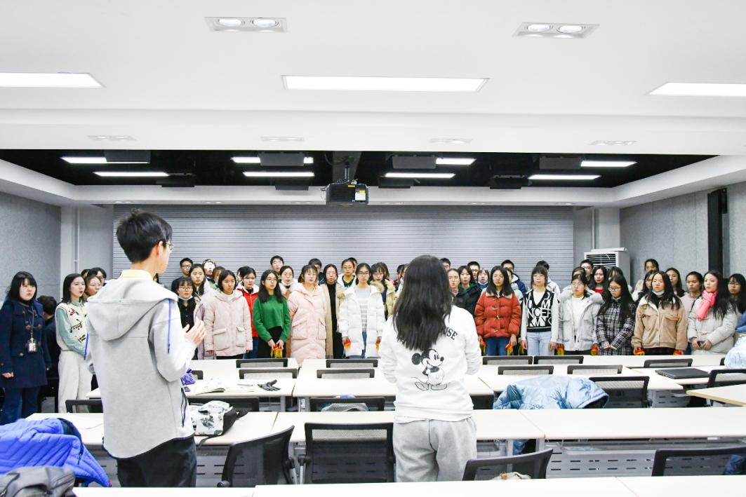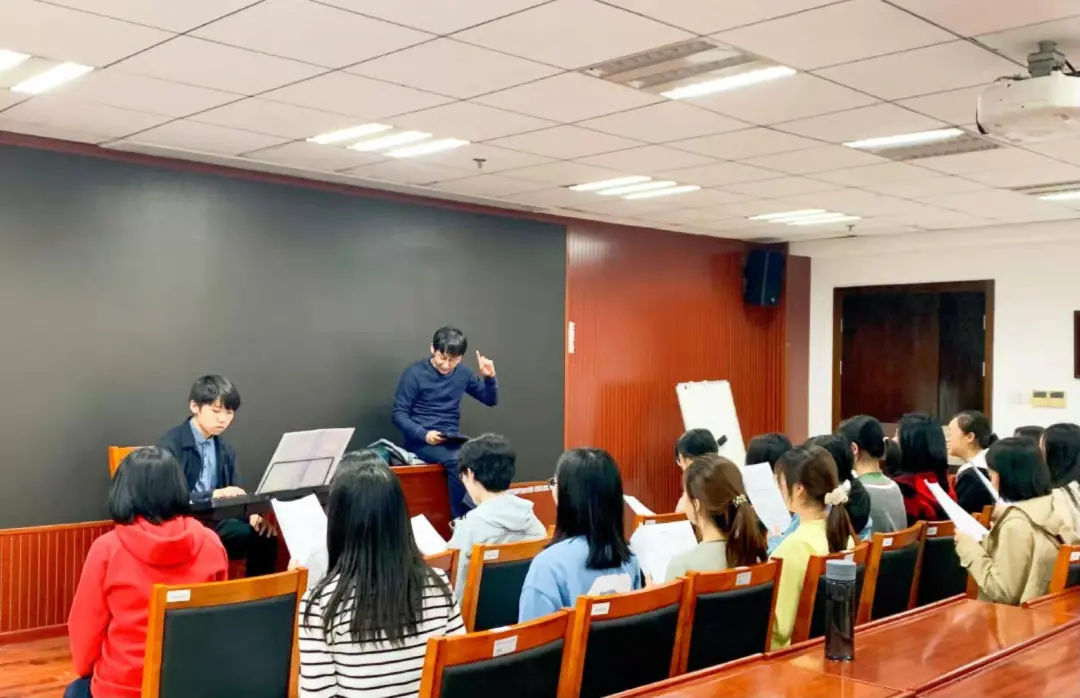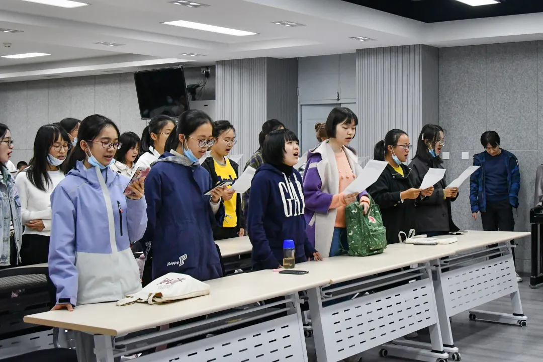 12月3日,学院邀请中国人民大学艺术教育中心副主任费佳老师指导同学们演唱。听着费佳老师专业的指导以及娓娓道来的歌曲故事,大家慢慢将感情融入了歌曲之中,歌声里又多了几分欢快,多了几分自豪。