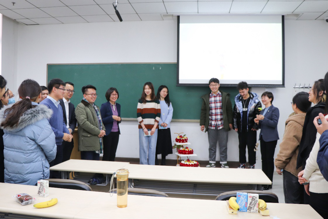 11月25日中午12点半,明商0409传来振奋人心的歌声,学院党委书记宋东霞老师、党委副书记林晨老师和新生班主任老师们前来慰问参赛的应小经们,为大家送上鼓励与祝福,并和大家们一起过了集体生日会。寿星们收到了来自师兄师姐们的生日贺卡,同时精致的生日蛋糕也给所有同学带来了惊喜,让大家彼此更加亲近,对129的热情也更加高涨。