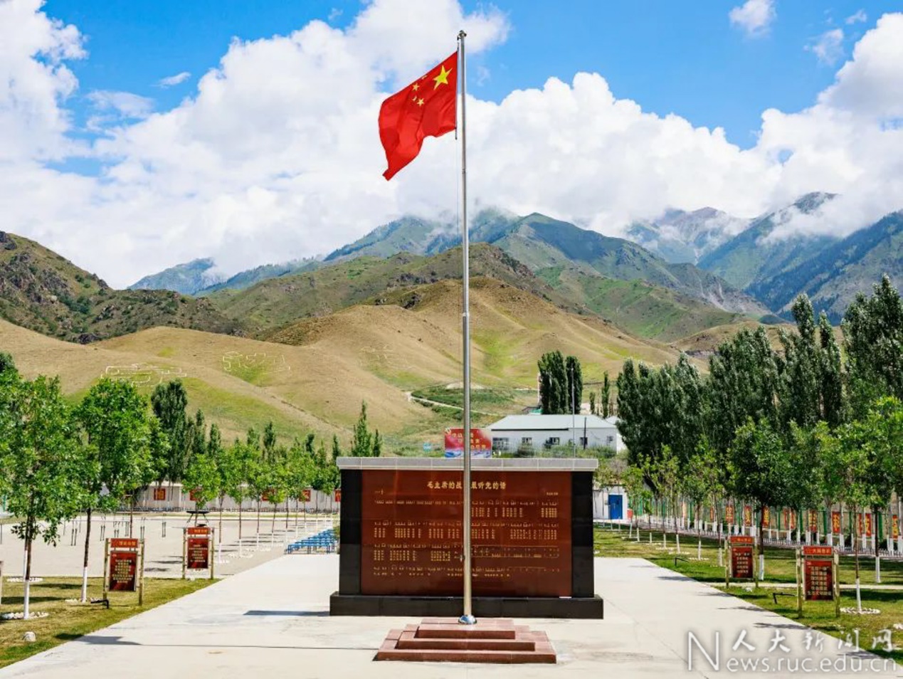 “从天安门到新国门,五星红旗飘扬的地方,就有人大人的足迹”。席志成是国际关系学院2022级的本科新生,去年9月与全体军训营师生一起登上天安门观礼台观看升国旗仪式的他,作为“先锋闯将”优秀学生培养计划第一期代表参加“大国边疆”调研团来到霍尔果斯第六代国门。