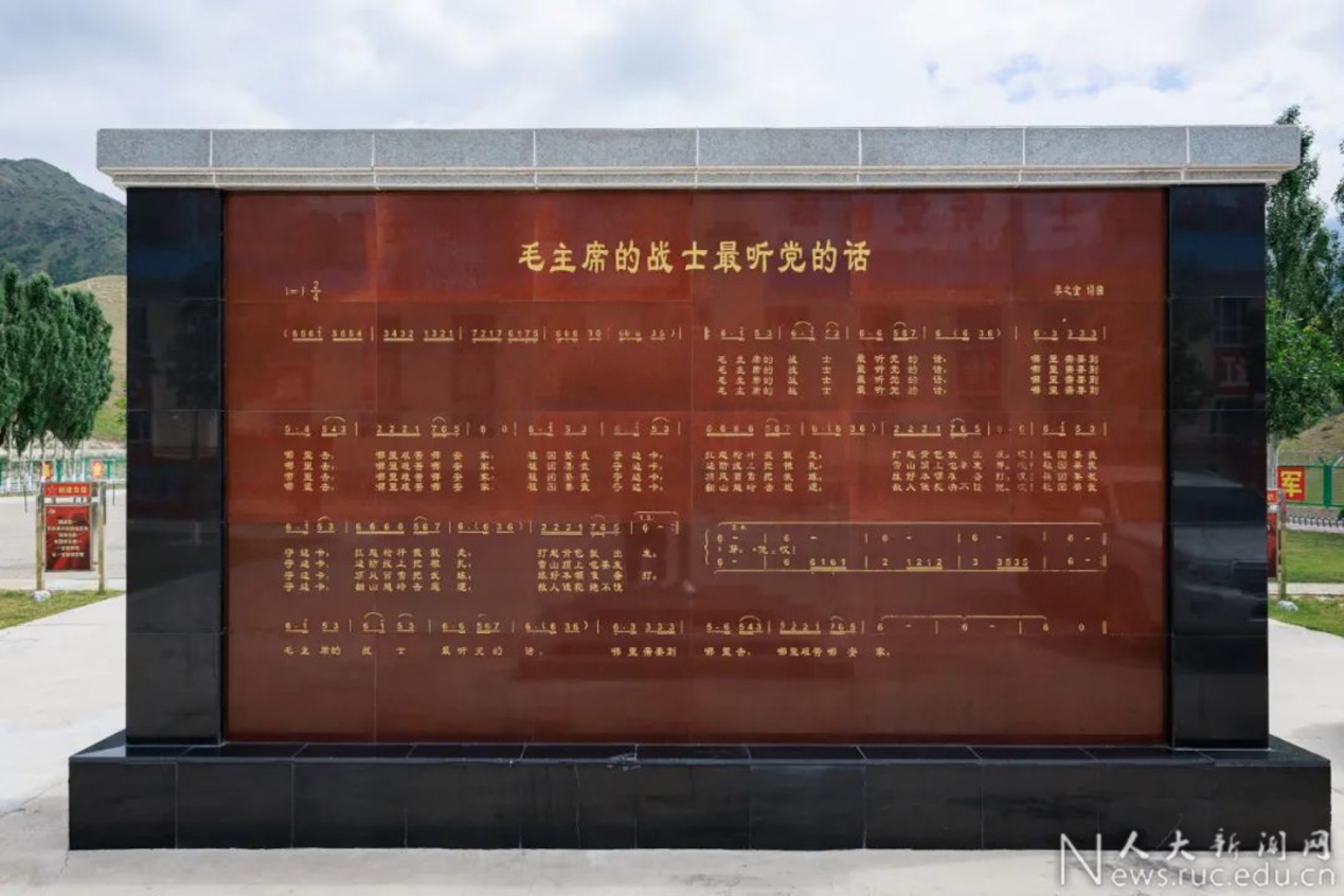 站在镌刻着歌词的“石书”旁,战士们带领“大国边疆”调研团的同学们唱响《毛主席的战士最听党的话》。几十年来,每当这首熟悉的旋律响起,人们眼前总能浮现出边防官兵苦中作乐、战天斗地的生动画面,耳旁总能听见“哪里需要到哪里去,哪里艰苦哪安家”的朴素心声,心中总能升腾起“一心向党,艰苦奋斗,英勇顽强,牺牲奉献”的红歌精神。