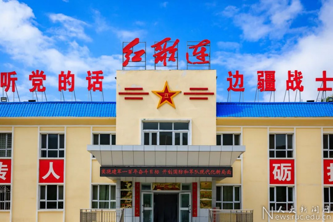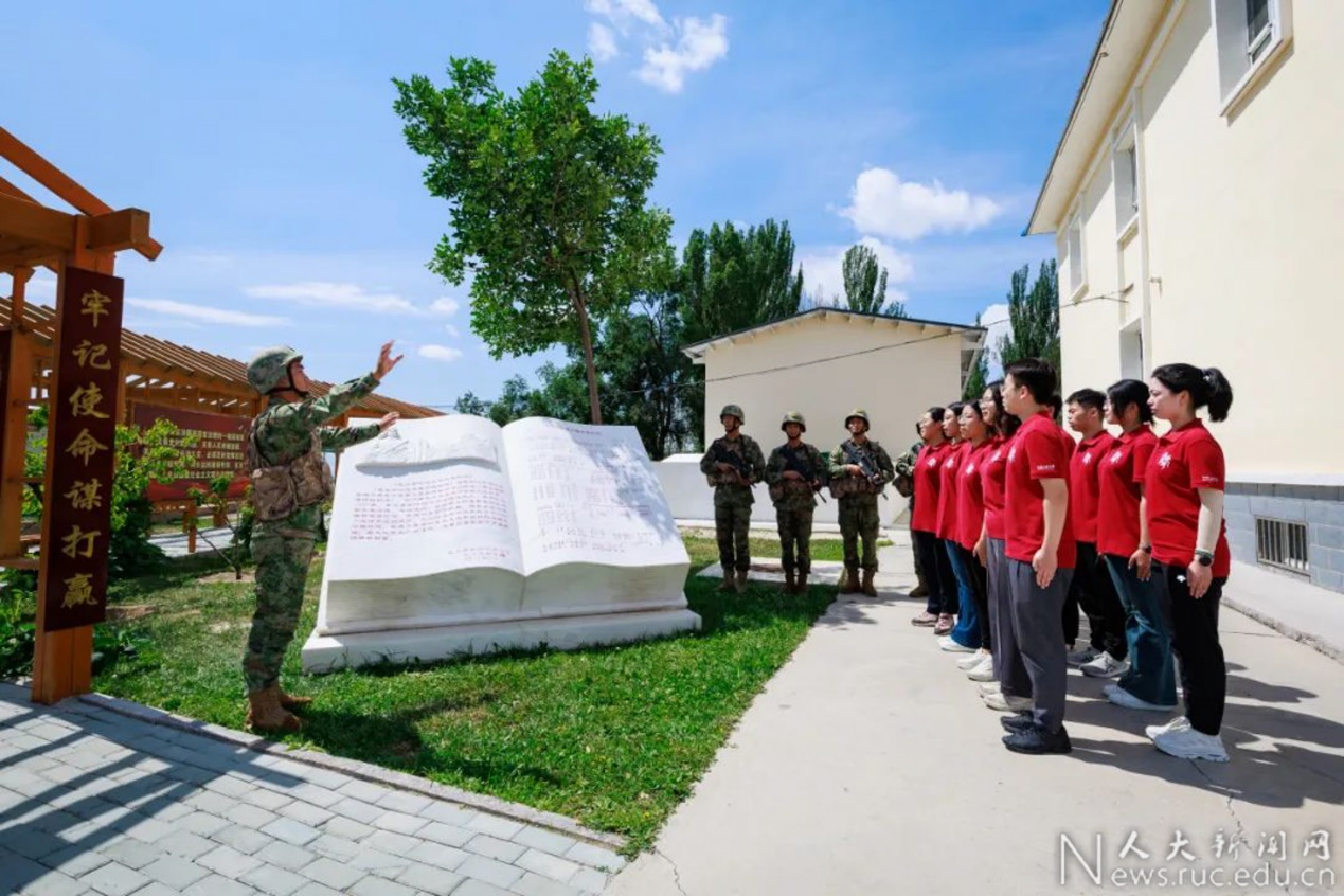 在连长梁欢的带领下,调研团师生共同参观连史馆。1962年,来自天南海北的指战员奔赴新疆边防一线。在荒无人烟的山头,官兵们以“三峰骆驼一口锅,两把铁锹住地窝”的艰苦创业精神,在石头缝里扎下根来,白手起家盖起哨卡、建起边防站。在那段艰苦的岁月,一线官兵心中流淌出“祖国要我守边卡,边防线上把根扎”的心声,这便成为后来唱遍大江南北的红歌——《毛主席的战士最听党的话》。