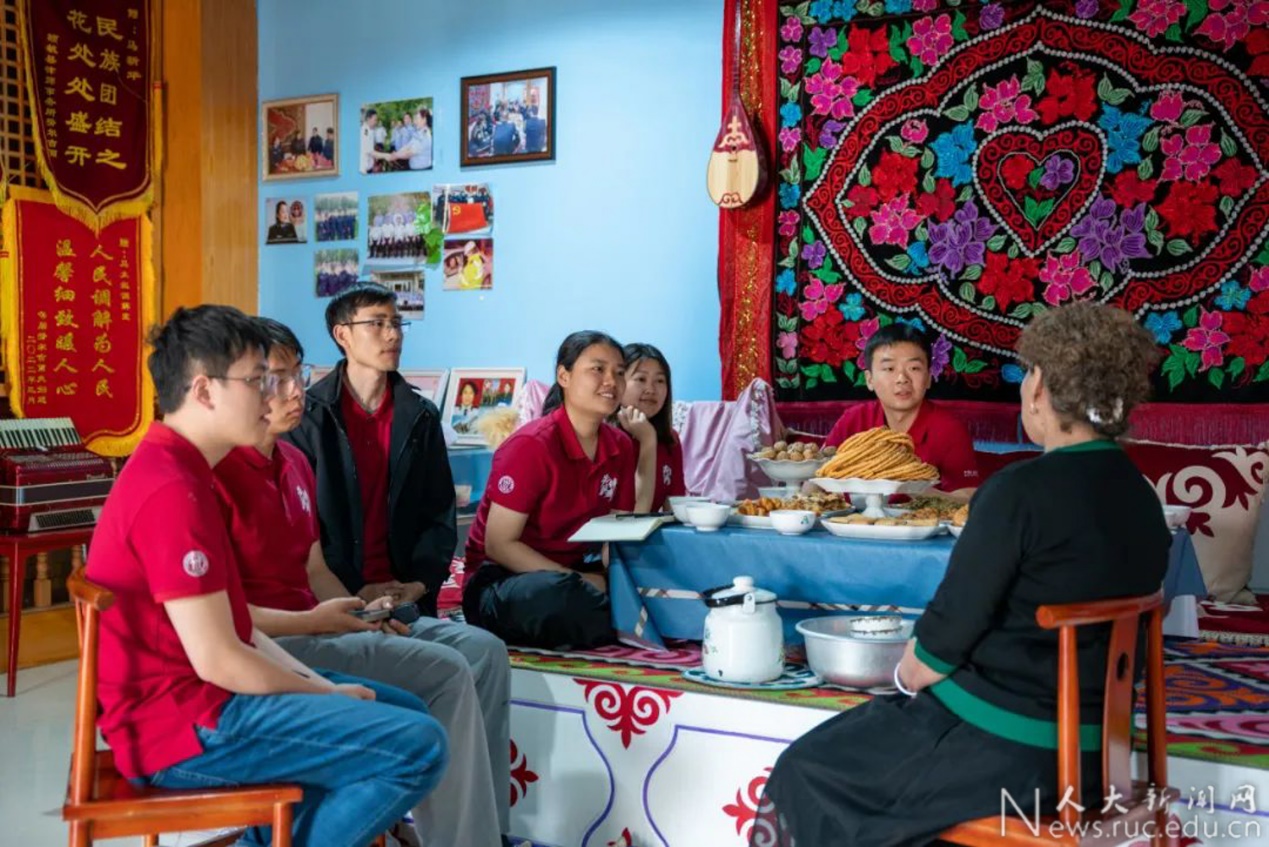 (“大国边疆”调研团师生在塔城马大姐家围坐)