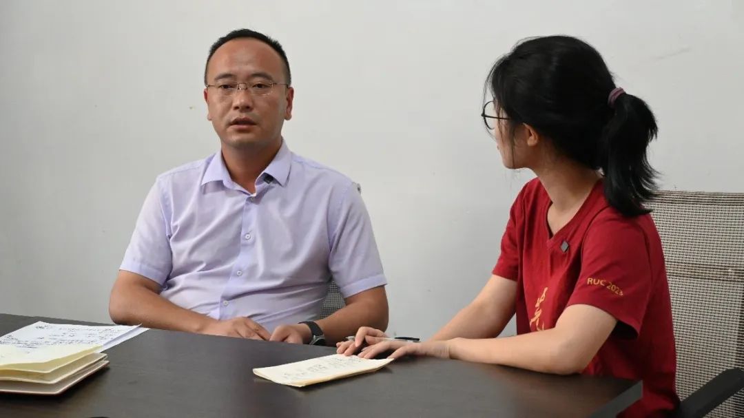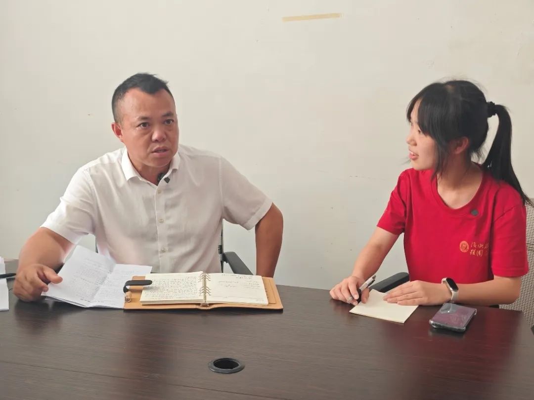 ▲调研团新闻学院本科生许佳琳访谈正大镇聚宝村乡村振兴驻村第一书记王洪江
